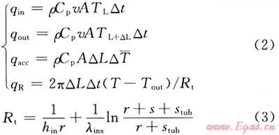 在△t時間內(nèi),微元管段的熱量平衡方程為[4]: