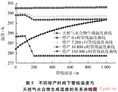 4) 隨著關(guān)井時間的延長,管線內(nèi)溫度逐漸接近于外界環(huán)境溫度,為防止天然氣水合物的生成,要盡量延長無接觸時間。
