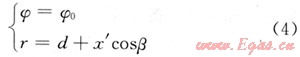 ,裂紋長(zhǎng)為2a,O′為裂紋的中點(diǎn),裂紋的傾角為β,裂紋相對(duì)最大水平地應(yīng)力的方位角為φ0。求出裂紋面上每一點(diǎn)的正應(yīng)力和剪應(yīng)力,即可得到應(yīng)力強(qiáng)度因子;求出裂紋面上每點(diǎn)的應(yīng)力狀態(tài),即可得到剪應(yīng)力和正應(yīng)力;只需求出每點(diǎn)的r和φ,然后代入定向井井周應(yīng)力計(jì)算公式即可得到應(yīng)力狀態(tài)。根據(jù)假設(shè)可知: