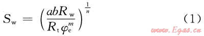 1942年,Archie根據(jù)前人和他本人的研究數(shù)據(jù),得出純砂巖在地層水礦化不太低的情況下全含水和部分含水時(shí)的導(dǎo)電規(guī)律,提出以純砂巖為基礎(chǔ)的導(dǎo)電模型,建立適用于純砂巖油氣層的巖石含水飽和度公式。即
