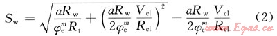 1971年,Poupon等人在印度尼西亞地層評(píng)價(jià)中認(rèn)為Simandoux公式在地層水礦化度較高的地區(qū)應(yīng)用效果較好,而在地層水礦化度較低的印度尼西亞地區(qū)應(yīng)用效果不夠好。在Simandoux公式基礎(chǔ)上,發(fā)展了適應(yīng)于印度尼西亞地區(qū)泥質(zhì)含量較高、地層水礦化度較低地層的印度尼西亞公式。即