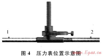 具體試驗(yàn)步驟:選擇空曠場(chǎng)地,搭建試驗(yàn)平臺(tái);剝防腐層,除去管線(xiàn)表面油污、底漆;測(cè)量管線(xiàn)橢圓度,保證封堵點(diǎn)位置橢圓度不超過(guò)1%;測(cè)量管線(xiàn)壁厚,盡量避開(kāi)嚴(yán)重腐蝕區(qū)域;選擇合適點(diǎn),焊接封堵三通、注氮短節(jié)、平衡短節(jié)以及管線(xiàn)封頭;對(duì)焊道進(jìn)行滲透探傷檢查;安裝夾板閥、球閥,壓力表位置安裝示意圖見(jiàn)圖4,從口2注入氮?dú)猓瑝毫?.0MPa;安裝1200H開(kāi)孔機(jī)和T101型開(kāi)孔機(jī),開(kāi)DN600mm封堵孔和2號(hào)平衡孔;調(diào)試、安裝封堵器,進(jìn)行封堵操作,封堵操作時(shí)先壓力平衡后方可進(jìn)行下一步的操作;經(jīng)測(cè)量和計(jì)算,封堵尺寸下到位后,打開(kāi)2號(hào)球閥放空氣體;使用火焰切割設(shè)備,切開(kāi)2號(hào)球閥一側(cè)封頭,向管道內(nèi)安裝氣囊并給氣囊充氣;觀(guān)察1號(hào)位置處短節(jié)上的壓力表看壓力是否變化,用肥皂水噴氣囊貼管內(nèi)壁處,若壓力表無(wú)變化,氣囊貼管壁處無(wú)氣泡則封堵成功,否則封堵視為不成功,此時(shí)應(yīng)分析封堵不成功的原因,并有針對(duì)性地提出解決問(wèn)題的措施,直到封堵成功為止。封堵試驗(yàn)完成后,對(duì)1號(hào)位置處進(jìn)行泄壓;拆卸封堵設(shè)備和焊接在試驗(yàn)管道上的三通等機(jī)具、器材,并將它們擺放就位。