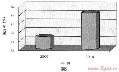 圖5為我公司2009/2010年第三方測評抄表業(yè)務滿意度變化圖。我們從圖5可以看出,自從推廣了一報一抄抄表模式后,大大減少了入戶次數(shù),抄表擾民系數(shù)降低,得到了廣大用戶的認可。由第三方開展的客戶滿意度調(diào)查結果顯示,2010年的抄表業(yè)務客戶滿意度從2009年的83.42%提升到86.16%,上升近3個百分點。