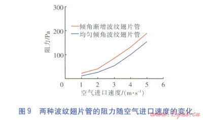 ②增大空氣進(jìn)口速度可以提高波紋翅片管的換熱量,但阻力也隨之增大,應(yīng)根據(jù)允許的空氣壓力降選擇合適的空氣進(jìn)口速度。