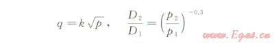 式中q為流量,m3/ min;p為壓力,kPa;k為流量—壓力系數(shù),與管徑大小有關(guān);D1和D2分別對應(yīng)壓力p1和p2時的液滴直徑。