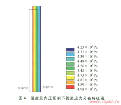 2 內(nèi)外壓及熱應(yīng)力影響下管道的應(yīng)力應(yīng)變分布