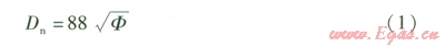式中Dn——大氣連通管當(dāng)量直徑,mm