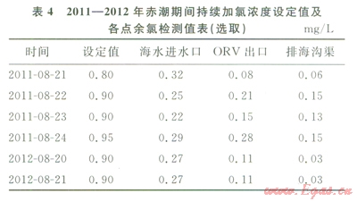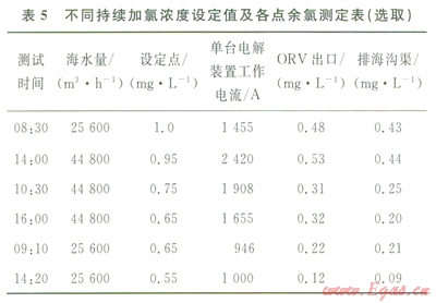 2)海水余氯濃度處于設(shè)備長期運(yùn)行所能承受的范圍內(nèi)。