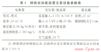 接收站目前設(shè)有兩臺加氯裝置,主要設(shè)備參數(shù)見表l。