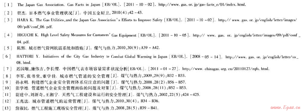 根據(jù)我國一些城市公布的統(tǒng)計結(jié)果,城市燃?xì)獍踩鹿室殉蔀槲覈^交通事故、工傷事故之后的第三大殺手。燃?xì)馐鹿暑l出給政府、燃?xì)庀嚓P(guān)企業(yè)乃至公眾敲響了警鐘,也引發(fā)了關(guān)于如何提高城市燃?xì)獍踩乃伎?。在城市燃?xì)獍踩芾矸矫?,日本有很多?jīng)驗(yàn)值得借鑒。