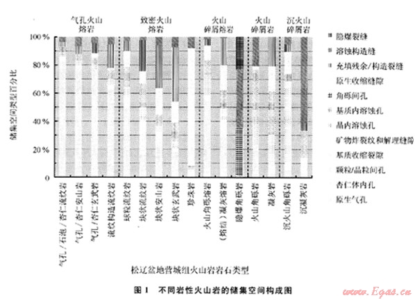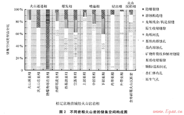 筆者基于前人的研究基礎,統(tǒng)計了松遼盆地營城組火山巖中不同孔縫的面孔率,得出了16種巖性12種亞相的主要儲集空間類型,討論了原??紫逗痛紊紫兜某梢颍瑢鹕綆r氣藏的勘探開發(fā)有一定的幫助。