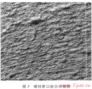 綜合以上分析推斷4#、5#、6#、7#螺栓在過高的交變應(yīng)力和腐蝕作用下產(chǎn)生了疲勞裂紋,在疲勞裂紋擴(kuò)展到一定程度時,螺栓因受力過載發(fā)生全部斷裂。結(jié)論為: