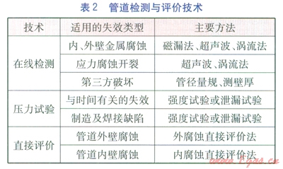 管道在建設和運營過程中,由于各種原因不可避免地會產(chǎn)生凹陷、變形、腐蝕以及由于外力產(chǎn)生的破壞、位移等,造成管道變形、泄漏、爆炸等失效模式,導致輸氣中斷、人員傷亡、財產(chǎn)損失、環(huán)境破壞等失效后果。完整性評價是利用基于風險的燃氣管道安全檢測技術,評估管道現(xiàn)行狀態(tài),確定維修維護措施與再評價周期的過程。由于城市燃氣管道與長輸管道在管材、管徑、壓力等級、連接方式等各方面存在較大差異,適用于長輸管道上的完整性檢測方法不可直接移植于城市燃氣管道。目前國內(nèi)外用于燃氣管道的檢測與評價技術主要有在線檢測、壓力試驗和直接評價3方面,見表2。