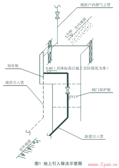 燃?xì)庖肟跒橥ピ喝細(xì)夤艿琅c戶內(nèi)燃?xì)夤艿赖姆纸琰c,分為地上引入口和地下引入口兩種,是管件的主要集中部位,也是安全事故多發(fā)部位。用戶引入口更貼近居民的日常生活區(qū)域,一旦發(fā)生泄漏事故將直接危及居民的人身、財產(chǎn)安全。岡此,能否對燃?xì)庖肟谶M行安全、合理的改造,是實現(xiàn)安全用氣,造福于民的關(guān)鍵措施之一。