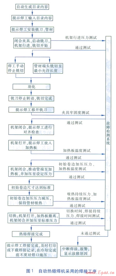 自動化控制的焊接程序具有以下優(yōu)點:減少人工操作步驟,降低人為因素對焊接質(zhì)量的影響;自動設(shè)定、檢測焊接參數(shù),當焊接參數(shù)超標時可報警并中斷焊接;可提供焊接記錄。