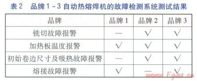 品牌l、2自動熱熔焊機的故障檢測系統(tǒng)不完整,即使焊接參數(shù)不符合標準也可允許焊接繼續(xù)進行。品牌l~3自動熱熔焊機的故障檢測系統(tǒng)測試結(jié)果見表2。由表2可知,品牌1、2自動熱熔焊機未對表2中列舉的所有故障作出報警提示。