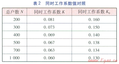將計(jì)算結(jié)果與GB 50028—2006((城鎮(zhèn)燃?xì)庠O(shè)計(jì)規(guī)范》附錄F中推薦的同時(shí)工作系數(shù)值(設(shè)為K0)進(jìn)行對(duì)照,見表2。