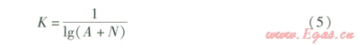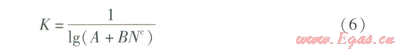 函數(shù)的y軸平移A個(gè)單位得到。y軸的平移是必要的,而自變量按比例調(diào)整更為重要,同時(shí)為了保證同時(shí)工作系數(shù)的精度,將自變量進(jìn)行加冪運(yùn)算。因此,在式(5)的基礎(chǔ)上對(duì)擬合函數(shù)的形式進(jìn)行改造,則函數(shù)表達(dá)式就變?yōu)椋?span lang="EN-US">