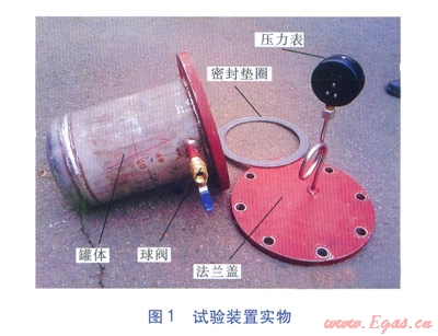 由于需進行液相浸泡,試驗所需裝置為壓力容器,參考LPG鋼瓶的設(shè)計壓力,將試驗罐的設(shè)計壓力定為1.6MPa。試驗裝置實物見圖1。
