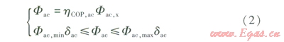 考慮機組輸出功率的上下限,并假定機組性能系數(shù)(hCOP,ac)保持不變,采用如下模型: