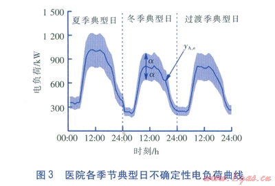 分布式能源系統(tǒng)的優(yōu)化配置對于獲得好的經(jīng)濟效益至關(guān)重要,而優(yōu)化配置又強烈依賴于用戶的各類負荷需求。目前在優(yōu)化配置中通常采用兩種負荷,一種是夏季、冬季和過渡季等幾種典型日的負荷預測值[7],另一種是全年逐時(8760h)負荷預測值[8]。但前者忽略了同一個季節(jié)內(nèi)負荷的差異;即使是基于后一種方法,現(xiàn)實中存在的氣象條件、內(nèi)擾不確定性,以及各能量預測供應的對象、面積與實際運行時的偏差,也可能導致聯(lián)供系統(tǒng)的設(shè)備投資浪費或不足、經(jīng)濟效益無法充分發(fā)揮,極端情況下甚至會出現(xiàn)停運的尷尬局面,上海黃浦區(qū)中心醫(yī)院就是典型的例證[9]。因此,考慮用戶負荷需求的不確定性,以增強分布式能源系統(tǒng)經(jīng)濟效益的魯棒性,是聯(lián)供系統(tǒng)優(yōu)化配置的現(xiàn)實需求。