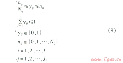 式中Nij——第i種,型號設(shè)備最多可選臺數(shù)