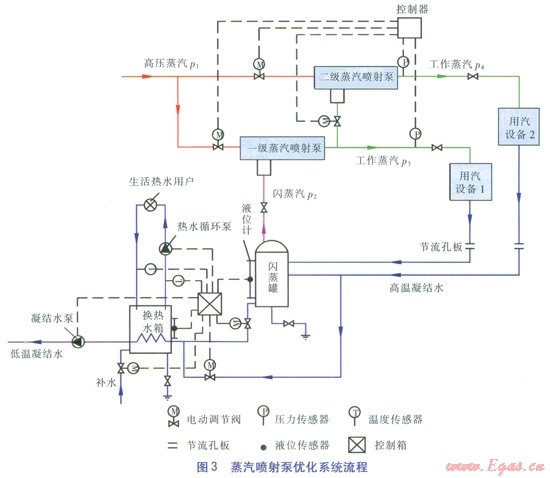 由于采用兩級蒸汽噴射泵,可以滿足不同壓力等級用汽設備的需求,提高了系統(tǒng)的適用性。