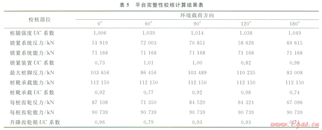 運(yùn)用本文闡述方法進(jìn)行綜合校核評估的結(jié)果:該型平臺可在該海域環(huán)境參數(shù)條件下進(jìn)行生產(chǎn)作業(yè)。