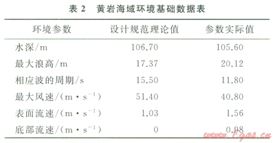 對比表2中數(shù)據(jù),得知該海域的最大浪高、表面和底部流速等環(huán)境參數(shù)數(shù)值已超過平臺操船手冊[12]規(guī)范的數(shù)值,因而在正常條件下,該型平臺不能在該海域進(jìn)行生產(chǎn)作業(yè)。