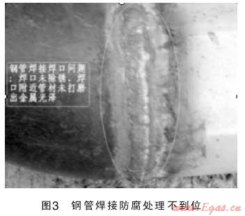 1)由于鋼管施工不遵守操作規(guī)程,在管道防腐或下管時已產生防腐層損壞,外防腐層起不到應有的保護作用,致使管道產生外腐蝕穿孔;