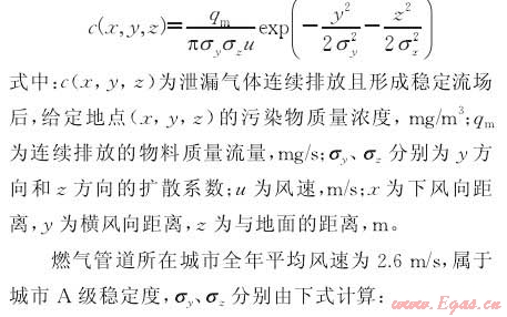 根據(jù)Pasquil-Gifford模型[4],假設(shè)連續(xù)泄放,計(jì)算蒸氣云濃度: