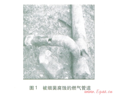 細菌腐蝕幾乎在土壤中均可發(fā)生,發(fā)生腐蝕后的管道表面有黃色或黑色的質(zhì)地疏松的銹層,創(chuàng)面邊緣不整齊,清除腐蝕產(chǎn)物后創(chuàng)面較粗糙。可根據(jù)腐蝕創(chuàng)面選擇尺寸合適的補件焊接修復,但需注意腐蝕點周圍管材的腐蝕情況,避免因管壁過薄導致焊穿造成漏氣。如果腐蝕區(qū)域較大,則只能采取更換管段的修復方式。圖l為某搶修現(xiàn)場被細菌腐蝕的燃氣管道。