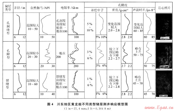 1) 川東地區(qū)黃龍組碳酸鹽巖可劃分為孔洞縫型、孔隙型和裂縫型3種儲(chǔ)層類型,不同的儲(chǔ)層類型具有不同的測(cè)井響應(yīng)特征,其中孔洞縫型是最好的儲(chǔ)層類型,孔隙型是最發(fā)育的儲(chǔ)層類型。