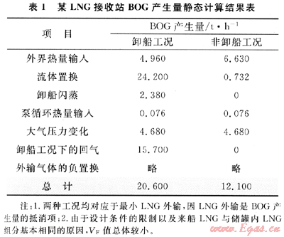 2 LNG接收站中BOG的靜態(tài)計算模型