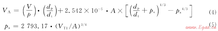 式中V為LNG儲罐內(nèi)的氣相空間,m3;p為LNG儲罐內(nèi)的操作壓力(絕壓),Pa;dp/dt為大氣壓力變化速率,Pa/h;ps為LNG儲罐內(nèi)氣液界面的過飽和壓力,Pa;VT1為LNG儲罐滿罐靜態(tài)蒸發(fā)率的一半(即對應于儲罐內(nèi)僅有20%LNG時的液位),kg/h;A為LNG儲罐內(nèi)氣液界面面積,m2。