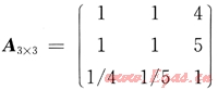 2) 用方根法計(jì)算權(quán)重向量,并計(jì)算出判斷矩陣的最大特征值。