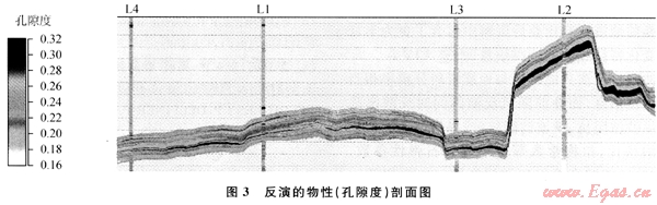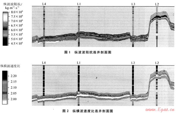 由于L氣田井?dāng)?shù)目相對較少,為了提高反演結(jié)果在空間上的可靠性,算法上選擇了將疊前AVA同步反演結(jié)果作為趨勢約束的基于序貫高斯協(xié)模擬技術(shù)的隨機反演方法。在此,地震數(shù)據(jù)和井?dāng)?shù)據(jù)一樣作為硬數(shù)據(jù)得到重視,反演結(jié)果同時符合測井、地震和輸入的數(shù)據(jù),并且受建立的地質(zhì)模型的約束。