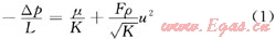 式中L為測點距離;U為平均流速;μ為流體黏度;K為滲透率;F為二次項系數(shù),由多孔介質(zhì)的孔徑、空隙率等特征參數(shù)決定。