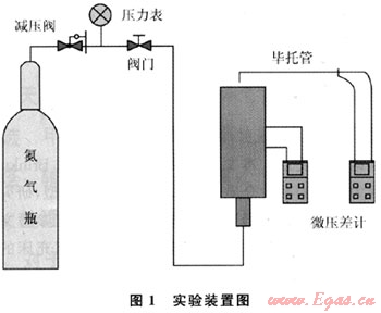 圖1為氣流通過泡沫陶瓷的流動阻力的實驗裝置圖。實驗氣源由高壓氮氣瓶提供,通過調(diào)整減壓閥與閥門的開度可以對氣流速度進行控制,以改變實驗工況。實驗段的壓力降和空截面流速采用數(shù)字微壓差計進行測量。數(shù)字微壓差計測試范圍為-100~+1500Pa,分辨率為0.1Pa,壓差精度為±1%讀數(shù)值。該儀表連接畢托管,即可進行風(fēng)速測量,測量范圍為1~49m/s,精度為±0.07m/s。
