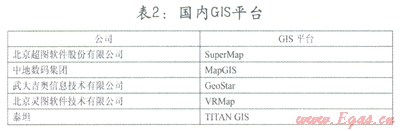 目前,國(guó)內(nèi)外的GIS平臺(tái)縱多,詳見(jiàn)表l和表2。