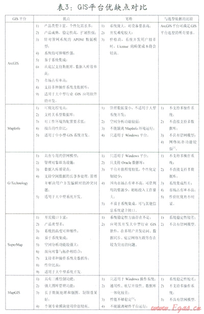 各個(gè)GIS平臺(tái)優(yōu)缺點(diǎn)以及與選型依據(jù)的對(duì)比如表3: