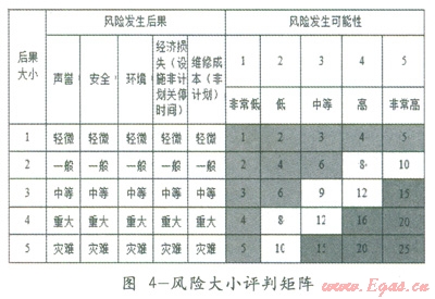管道的風險評價可使用定性、半定量或定量的方法進行。設計數(shù)據(jù)、管道運行數(shù)據(jù)及檢測數(shù)據(jù)等應作為評估的基礎數(shù)據(jù)。風險評價是進行檢測、監(jiān)控和完整性管理的基礎。因此,對管道進行風險狀況評價后必須進行風險等級劃分。即完成運行期管道風險狀況評估后,給出一個風險劃分的標準,把不同風險狀況的管道進行歸類。