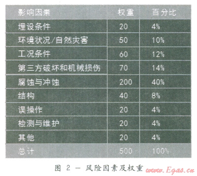 風險評價實施過程中,需要收集以往海管泄漏事故的資料,分析事故原因,找到主要威脅因子。確定各個威脅因子在模型中的權重調(diào)整參數(shù)。