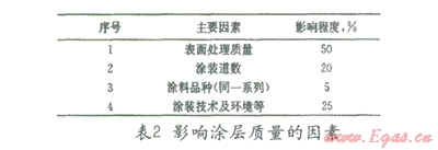 表面處理的好壞對(duì)涂層質(zhì)量影響很大,有學(xué)者研究過影響涂層質(zhì)量和壽命的各種因素,結(jié)果如表5所示[1],顯然表面處理的質(zhì)量是對(duì)涂裝質(zhì)量影響最大的因素。在海管節(jié)點(diǎn)的防腐施工中表面處理也非常關(guān)鍵,為了保證防腐效果必須對(duì)鋼表面進(jìn)行噴砂處理,達(dá)NSa2.5級(jí)以上。