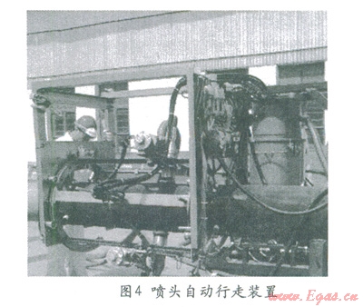 噴砂施工會(huì)造成大量的磨料飛濺和粉塵飛揚(yáng),造成嚴(yán)重的環(huán)境污染,一般鋼結(jié)構(gòu)的噴砂施工必須在封閉的廠房或者大棚內(nèi)進(jìn)行。而海管節(jié)點(diǎn)噴砂作業(yè)只能在鋪管船的作業(yè)線內(nèi)進(jìn)行,不但空間小而且布置著各種設(shè)備,人員眾多,無法使用常規(guī)方法進(jìn)行。所以必須使用專用的噴砂設(shè)備。我公司使用的是真空噴砂機(jī)配合噴頭自動(dòng)行走裝置。真空噴砂機(jī)是一種能夠?qū)崿F(xiàn)磨料自動(dòng)回收的噴砂機(jī),施工時(shí)噴頭與鋼材表面接觸形成密閉空間,鋼表面反射的磨料和灰塵等被吸入噴砂機(jī),對(duì)周圍環(huán)境污染小。噴頭自動(dòng)行走裝置能夠?qū)⒄婵諊娚皺C(jī)的噴頭固定在海管節(jié)點(diǎn)表面,按照一定速度移動(dòng),保證噴砂質(zhì)量的同時(shí)快速的完成整個(gè)節(jié)點(diǎn)表面的噴砂施工。