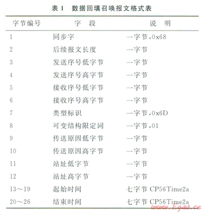 增加回填數(shù)據(jù)召喚功能,報文格式見表1。
