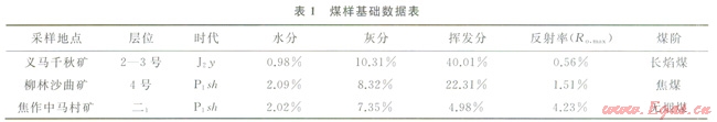 分別在河南省義馬市千秋礦井、焦作市中馬村礦井和山西省柳林縣沙曲礦井采集新鮮煤樣,進(jìn)行工業(yè)分析與反射率測試(表1)。