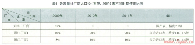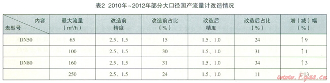 (2)在流量計的的生命周期管理中對于已經(jīng)老化影響到表具正常運行和計量的必須進行必要的改造和更換,以保證其生命力。合肥燃氣工商用戶2009年前使用的多為國產(chǎn)系列的流量計,在2006年前還大量使用了精度為2.5級流量計,計量誤差大,穩(wěn)定性差,且使用的故障率高,降低了表具的計量精度,影響到供銷差率的控制。針對這種情況,合肥燃氣每年下?lián)軐m椯Y金組織人員有重點對老舊表具進行改造,一是對2.5級表進行更換成1.5級~l.0級表,二是根據(jù)用戶現(xiàn)有灶具用量進行測算對DN50、DN80表流量范圍進行重新界定,更換成流量范同更適合的表具或選擇口徑小一級的表具進行計量。見表l、表2。