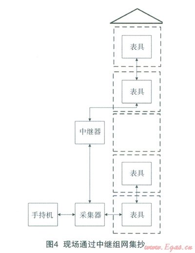 通過組網(wǎng)技術(shù),用遠(yuǎn)傳表或者中繼器來實現(xiàn)接力傳輸,從而擴大抄表信息傳遞的覆蓋范同。