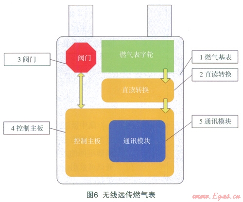 無線遠(yuǎn)傳燃?xì)獗硎窃谄胀矣闷つと細(xì)獗砩霞友b光電直讀計數(shù)器、電子控制模塊、無線通訊模塊等電子模塊組成的,如圖6所示,無線遠(yuǎn)傳燃?xì)獗戆惭b在用戶家中,燃?xì)夤疽詿o線手持機或者采集器為無線數(shù)據(jù)傳輸媒介,對燃?xì)獗韺嵭袘敉鈱崟r抄表和遠(yuǎn)程閥門控制。主要功能包括以下幾點: